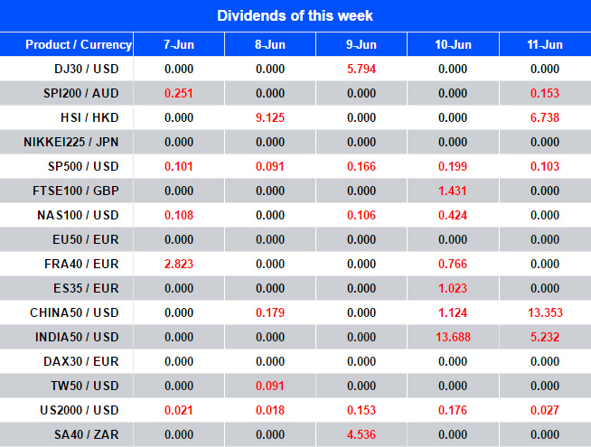 Warmly reminds you that the component stocks in the stock index spot generate dividends. When dividends are distributed, VT Markets will make dividends and deductions for the clients who hold the trading products after the close of the day before the ex-dividend date.