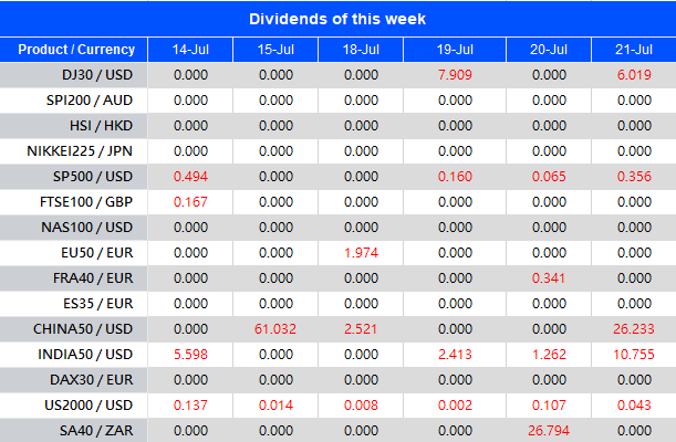 Warmly reminds you that the component stocks in the stock index spot generate dividends. When dividends are distributed, VT Markets will make dividends and deductions for the clients who hold the trading products after the close of the day before the ex-dividend date.