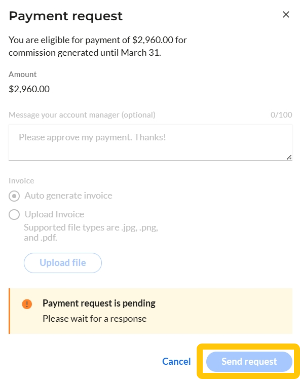 - ទៅកាន់ Dashboard ហើយចុច Request payment (ស្នើបង់ប្រាក់)