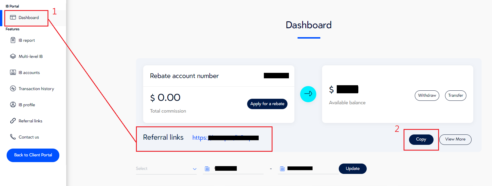 ក្រោយចុះឈ្មោះជោគជ័យជា IB អ្នកអាចរកតំណភ្ជាប់ណែនាំនៅក្នុង Client Portal ឬ IB Portal។