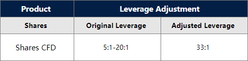1. All Shares leverage is adjusted back to 33:1, and the leverage adjustment during opening and closing are cancelled.