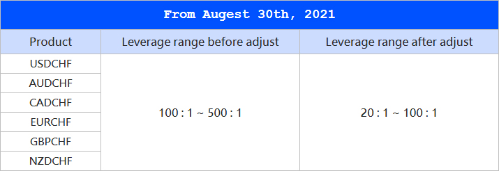 From 30th August, 00:00 (GMT+3 Server time) we will be applying margin changes as below. Your margin on CHF positions will increase by five times.