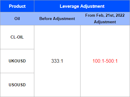 1. The leverage of oil products will be between 100:1 and 500:1 (It’s subject to your account leverage) instead of being fixed at 333:1.