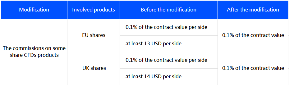 To provide you with a more favorable trading condition, we are pleased to announce that the fee structure of all EU & UK Share CFDs will be modified starting Sep. 05, 2022.