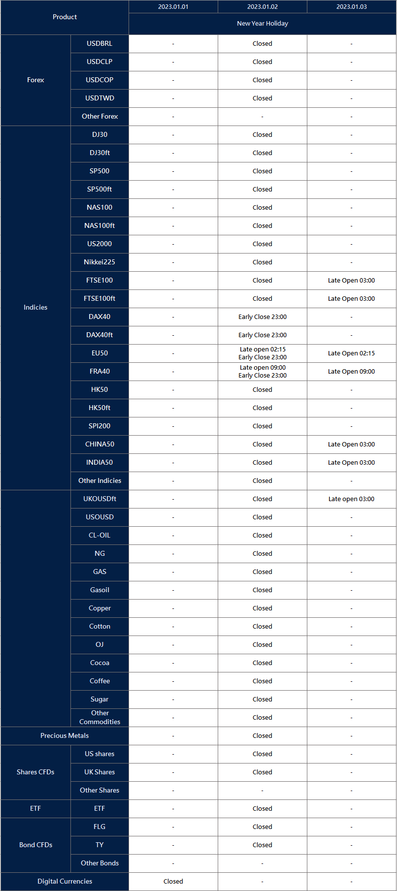 Please note that the following instruments’ trading hours will be affected by the upcoming holidays.